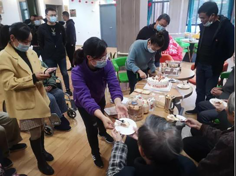 敬老院负责人热情接待了党员们,带党员们参观了院内环境,介绍了敬老院的大概情况,随后到了老人的下午茶时间,党员们送上准备好的蛋糕、面包等食物,与老人们共用下午茶。老人们对党员的到来表示欢迎,对党支部的慰问表示感谢,纷纷表示党员们的到来,让他们感受到党的温暖。