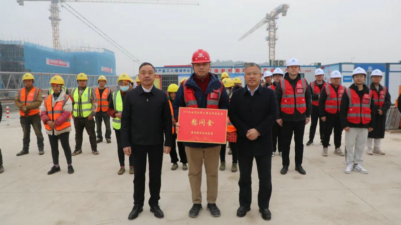 在景德镇国际陶瓷博览交易中心(二、三、四、五标段),余笑兵为一线工人们送上新春祝福及新年慰问,并对他们坚守岗位表示感谢。他表示,春节期间,项目负责人全力做好春节生活保障,要营造“家”的温暖,加大对外来务工人员关爱,确保留岗过年年味不缺、温情不减。同时叮嘱大家注意休息,劳逸结合,争取在新的一年里,跑出全年加速度,奋力夺取“开门红”。