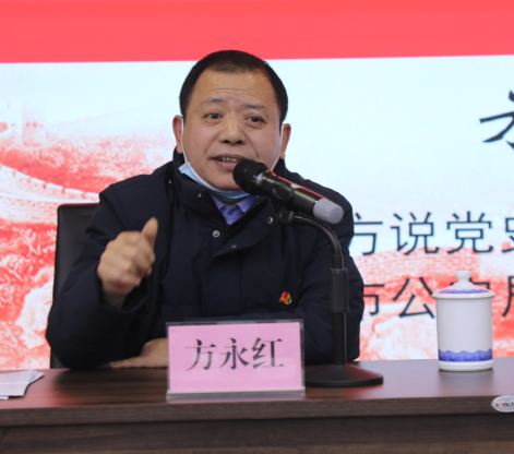 1月5日下午,市国控集团学习贯彻党的二十大精神宣讲报告会举行。市委宣讲团宣讲员、老方说党史宣讲团名誉团长、市公安局三级高级警长方永红同志作宣讲报告,集团党委书记、董事长余笑兵主持报告会,集团领导班子成员、公司各部门负责人、各子公司主要负责人和各基层党组织书记,共计40余人参加会议。