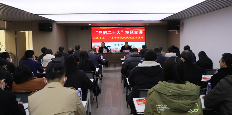 报告会上,方永红首先简要梳理了党的二十大报告的逻辑关系,阐明了报告是我们党对改革发展稳定、内政外交国防、治党治国治军的科学顶层设计,继而结合世界现代化史、中国近现代史、中共党史以及新闻热点,对怎样理解报告提出的中国式现代化做了分享交流。同时着重分析了中国式现代化的特点、本质要求和前进道路上要牢牢把握的五项原则,号召受众深刻领悟“两个确立”的决定性意义,把思想和行动统一到党中央的各项决策部署上来,在各自工作岗位上践行习近平新时代中国特色社会主义思想。