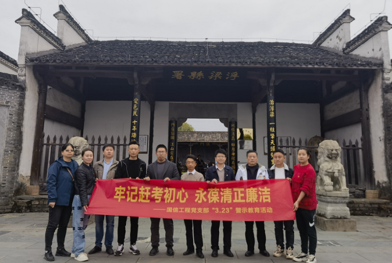 3月23日,国信工程党支部书记刘培靖带领全体党员干部、积极分子前往浮梁县古县衙党风廉政教育基地开展“3.23”警示教育。通过本次学习,进一步坚定了全体党员干部忠诚履职担当作为的决心,将以此次警示教育为契机,树高线、守底线、明红线、强党性,认真履好肩上责,求真务实、苦干实干,不断推进公司高质量发展,奋力走好新的赶考之路。